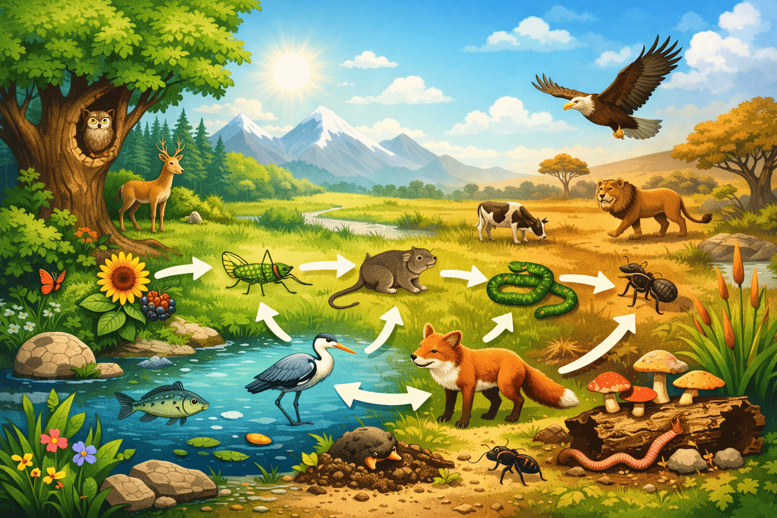 Mata Pelajaran IPAS (Ilmu Pengetahuan Alam dan Sosial) dirancang untuk membantu siswa memahami konsepĀ Ekosistem dan Rantai Makanan serta keterkaitannya dengan keseimbangan lingkungan. Melalui pembelajaran yang menyenangkan dan interaktif, siswa diajak untuk mengamati, menyelidiki, menalar, serta menerapkan konsep-konsep sederhana tentang hubungan antar makhluk hidup dalam suatu ekosistem di kehidupan sehari-hari.
